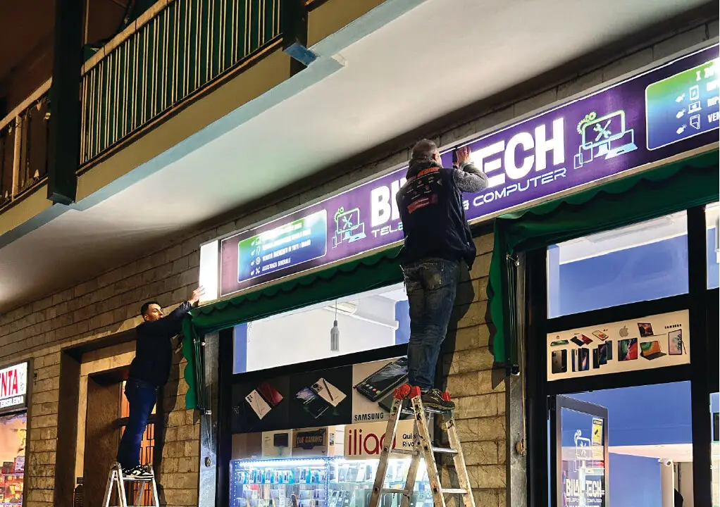 Insegna rinnovata alla perfezione: moderna, luminosa e di grande impatto per la nostra attività.
